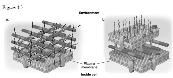 29) In Figure 4.3, which diagram of a cell wall has a structure that protects against osmotic lysis?